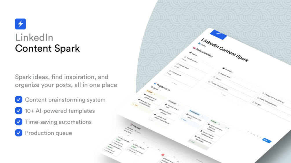 Notion is the greatest productivity app where you can think, write, and plan. The LinkedIn Content Spark system runs over Notion on both desktop and mobile. - What is a Notion template?